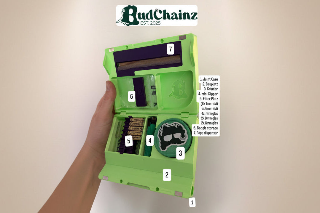 Bei BudChainz entsteht alles aus einer Hand. Von der Produktentwicklung über die Produktion bis hin zu Marketing, Content Creation, Webdevelopment und Grafikdesign wird jeder Schritt von einer einzigen Person umgesetzt.